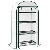 Achetez la serre Outsunny pour une culture annuelle. Protège plantes et légumes du climat et animaux. Cadre en métal, couverture en PE isole et protège. Porte enroulable pour un accès facile. Montage simple.