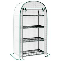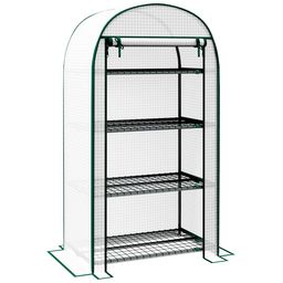 Achetez la serre Outsunny pour une culture annuelle. Protège plantes et légumes du climat et animaux. Cadre en métal, couverture en PE isole et protège. Porte enroulable pour un accès facile. Montage simple.Caractéristiques :- Couverture en plastique résistante aux UV pour une coquille protectrice,