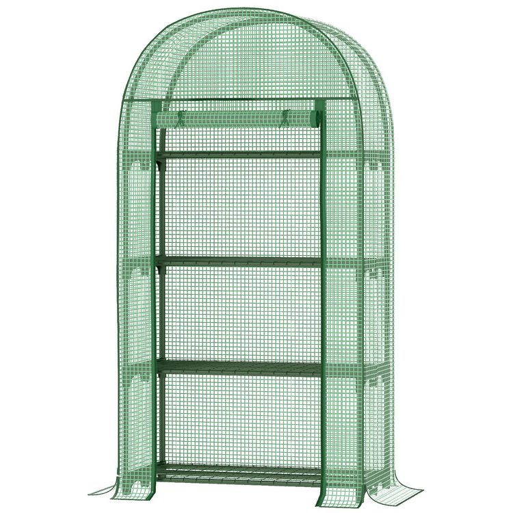 Serre de jardin serre de balcon 4 étagères métal porte zippée enroulable 80 x 49 x 160 cm PE vert