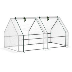 Serre de jardin tunnel 2,5L x 1l x 0,8H m grande porte zippée bâche PVC transparent métal époxy vert