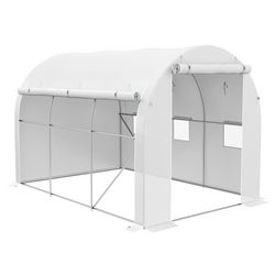 Serre de jardin tunnel 6 m² acier galvanisé renforcé dia. 1,9 cm bâche PE haute densité blanc