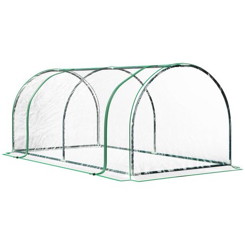 Serre de jardin tunnel serre à tomates dim. 2L x 1l x 0,8H m 2 portes zippées bâche PVC transparent acier époxy vert