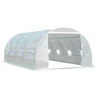 Serre de jardin tunnel surface sol 18 m² 6L x 3l x 2H m châssis tubulaire renforcé 24 mm 8 fenêtres blanc