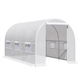 Serre de jardin tunnel surface sol 8 m² 4 x 2 x 2 m châssis tubulaire renforcé 18 mm 6 fenêtres blanc