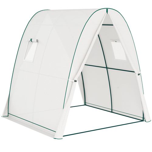 Serre tunnel de jardin 1,8 x 1,8 x 2 m - 2 portes enroulables zippées, 2 fenêtres - acier vert PE blanc