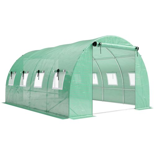 Serre tunnel de jardin - 12 m² - bâche PE 140 g/m² - 2 portes et 8 fenêtres - 295x400x200cm - bâche PE 140 g/m² - vert