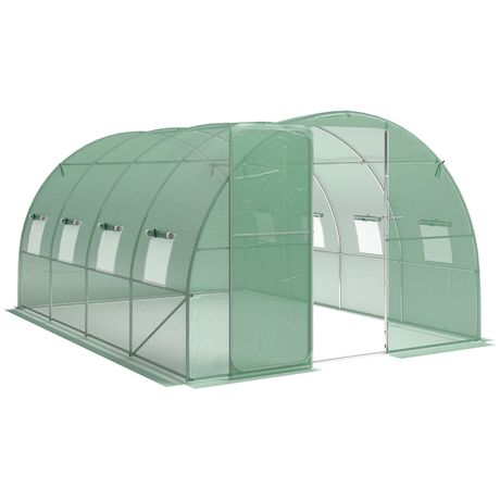 Serre tunnel de jardin - 12m², 295x400x200cm - porte et 8 fenêtres - bâche PE haute densité 140 g/m² - pour extérieur - vert