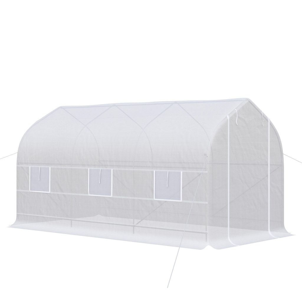 Serre tunnel de jardin 8 m² - 2 portes, 6 fenêtres - métal galvanisé bâche PE blanc
