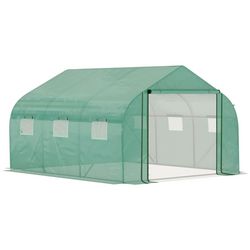 Serre tunnel de jardin grande taille dim. 3,47L x 3l x 2H m - 6 fenêtres et porte zippée enroulable - acier galvanisé PE haute densité vert