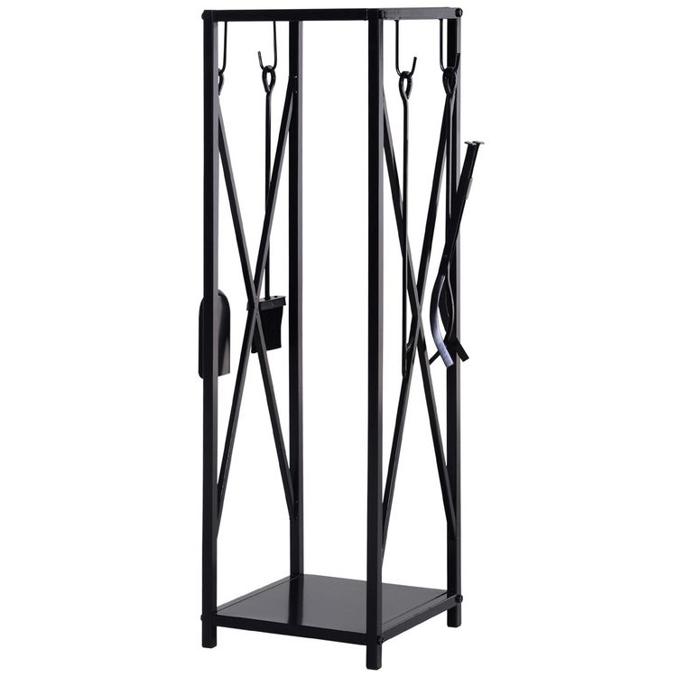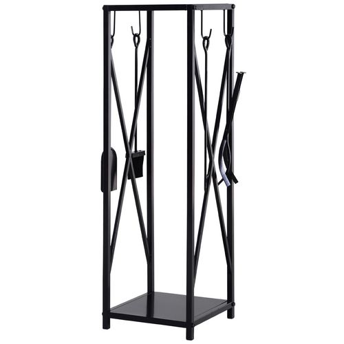 - Equipement complet : étagère et 4 accessoires fournis : pelle, balai, tisonnier et pince