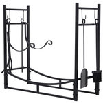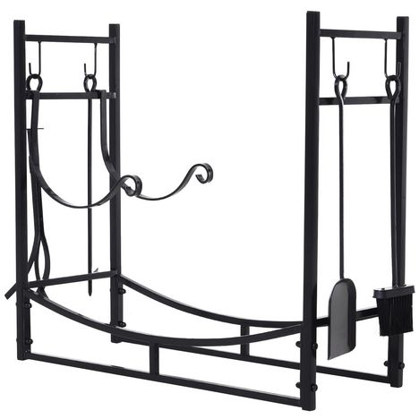 Serviteur de cheminée - porte bûches - range bûches multi accessoires étagère bûche et petit bois métal noir