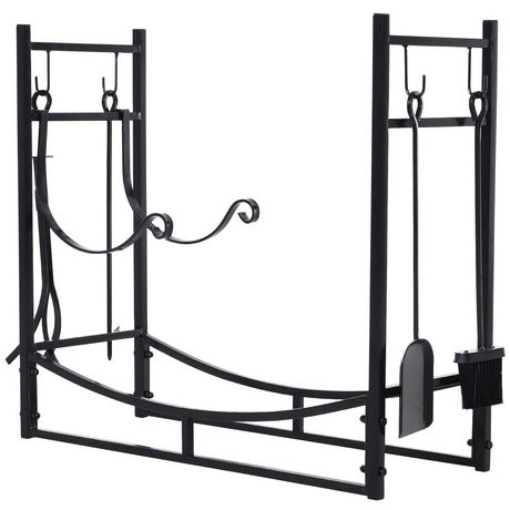 - Equipement complet : 2 étagères (une à bûche, l'autre à petit bois) et 4 accessoires fournis : pelle, balai, tisonnier et pince