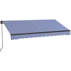 Store banne manuel rétractable inclinaison réglable manivelle alu polyester anti-UV bleu blanc