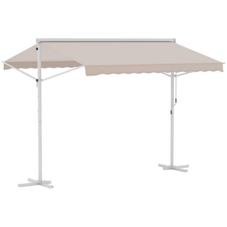 Store double pente manuel rétractable inclinaison réglable acier époxy blanc polyester imperméabilisé anti-UV beige dim. 3L x 2,95l x 2,6H m