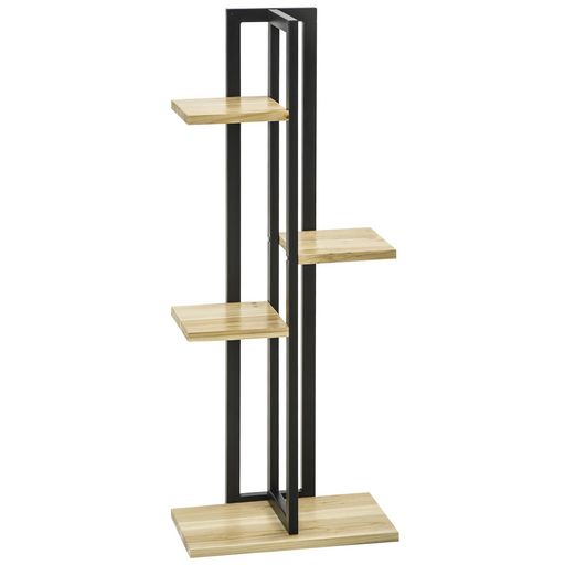 - Porte plante 4 étagères mélant métal noir et bois clair idéal pour apporter une touche type loft New-yorkais à votre intérieur ou extérieur