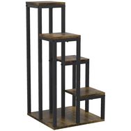 Support à fleurs style industriel 5 niveaux - porte plante 4 étagères - acier époxy noir aspect bois foncé