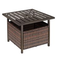 Table basse pied de parasol 2 en 1 résine tressée imitation rotin métal époxy chocolat