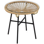 Table basse ronde de jardin en résine aspect rotin métal et plateau verre trempé Ø 50 x 50H cm beige