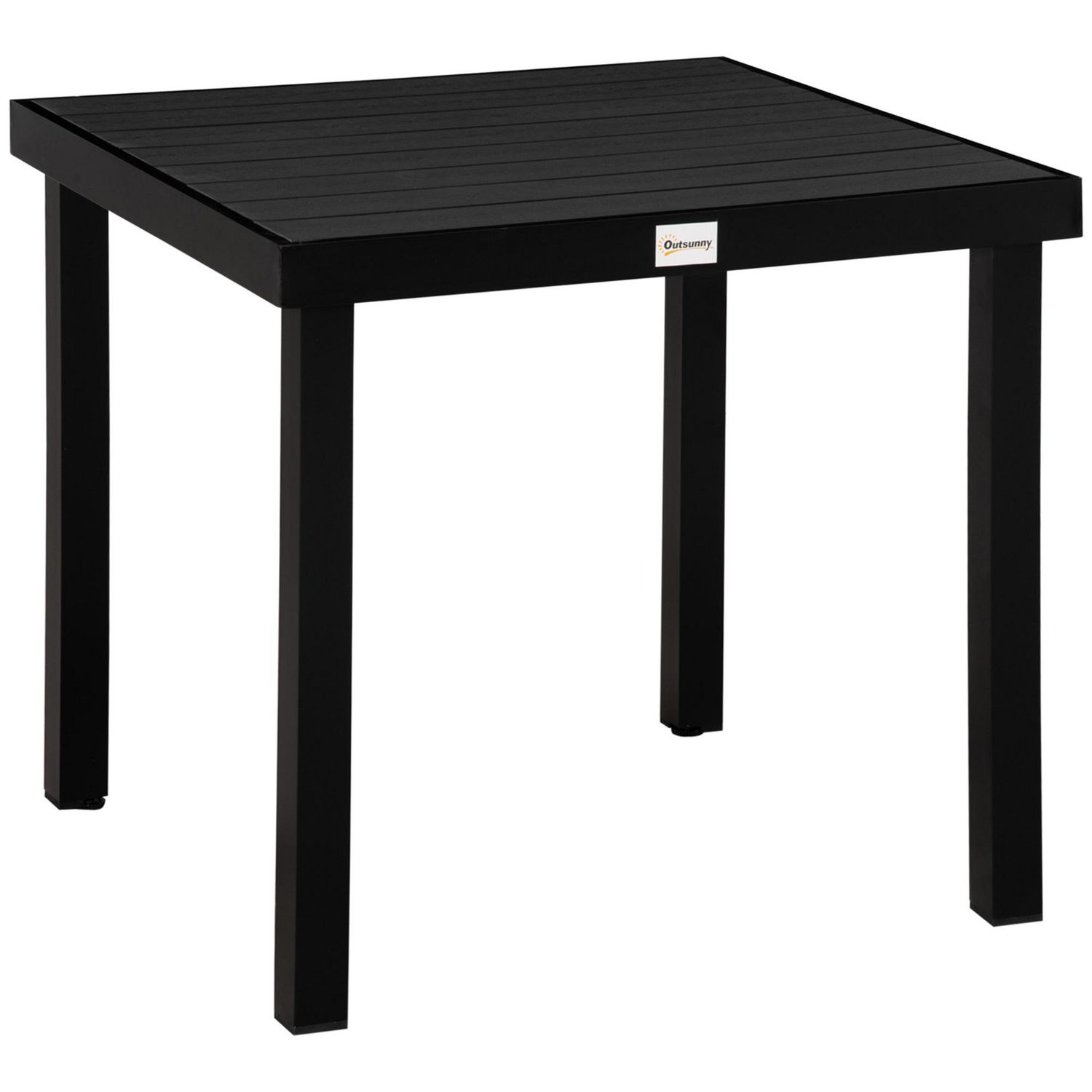 Table de jardin 2 personnes dim. 78 x 78 x 74 cm aluminium noir plastique effet bois