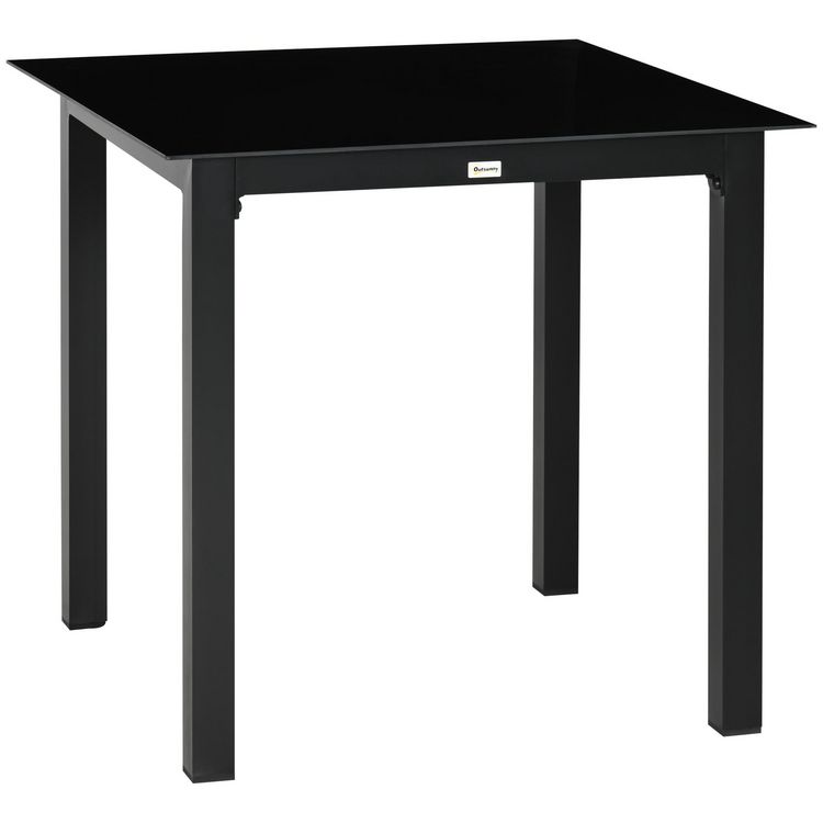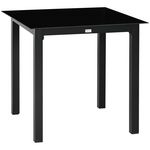 Table de jardin carrée 4 personnes dim. 80L x 80l x 74H cm alu. plateau verre trempé noir