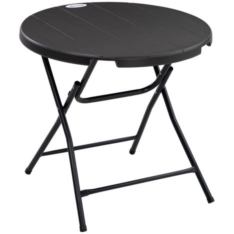 Table de jardin pliable 4 personnes table ronde pliante Ø 80 cm acier époxy plateau HDPE aspect bois gris