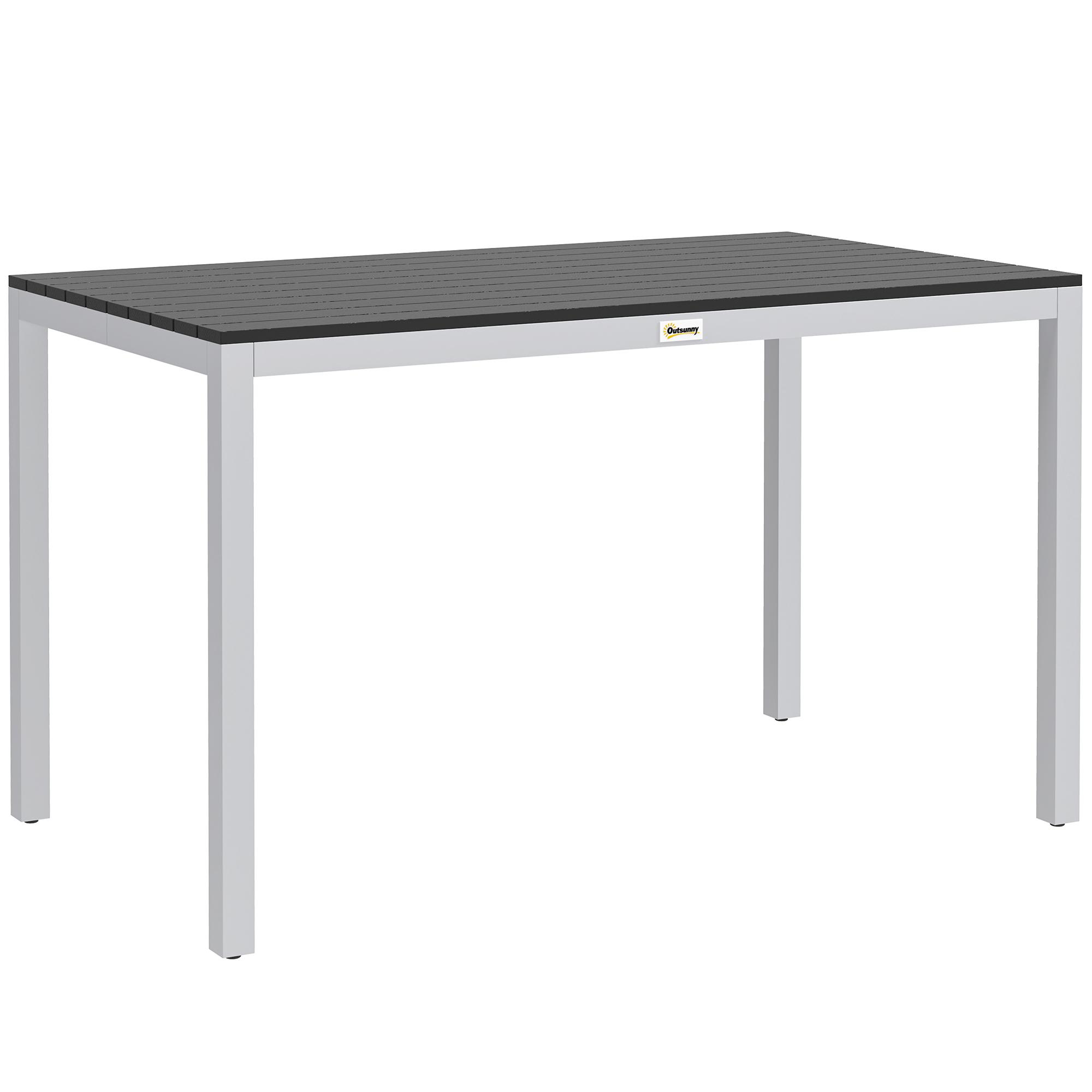 Métamorphosez votre extérieur avec la table de jardin Outsunny. Plateau imitation bois, design moderne, accueille 4 à 6 personnes. Plateau en PS solide, facile à entretenir, structure imperméable et antirouille. Parfaite pour les repas en plein air.Caractéristiques :- La table de terrasse extérieure
