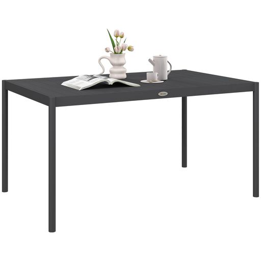 Apportez une touche d'élégance à votre intérieur ou extérieur avec cette superbe table de jardin pour 6 personnes. En aluminium traité époxy avec plateau PE à lattes aspect bois, cette table à manger s'intégrera dans tous les environnements. De plus, c'est un modèle de forme rectangulaire pour accueillir confortablement vos convives et partager de savoureux repas.