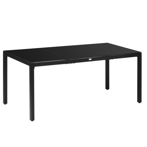 Table de jardin rectangulaire 8 personnes dim. 180L x 80l x 72H cm alu. plateau verre trempé noir