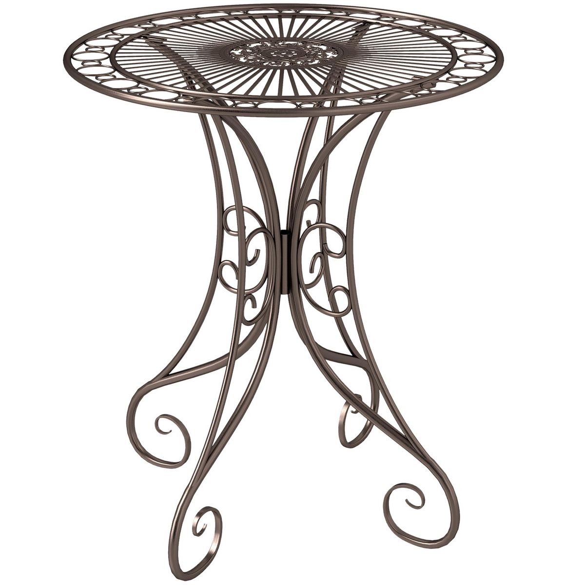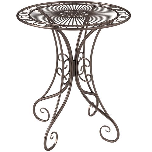 Table de jardin ronde 2 places style fer forgé dia. 85 cm métal brun