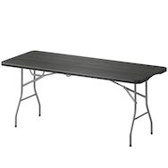 - Cette table pliable se plie en deux avec une poignée pour un rangement compact et facile à transporter