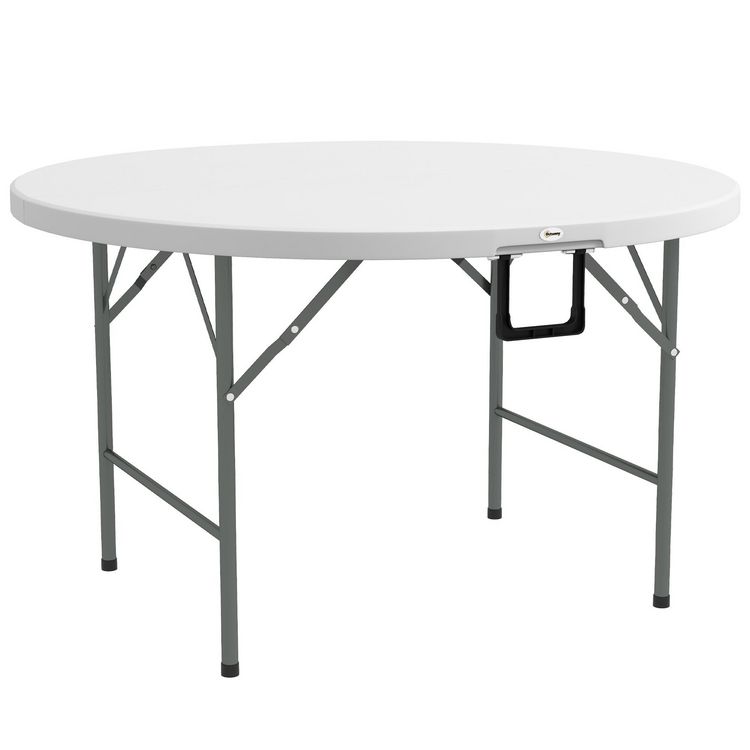 Table pliante table de camping pliable table de jardin Ø 122 x 73H cm poignée acier époxy HDPE blanc