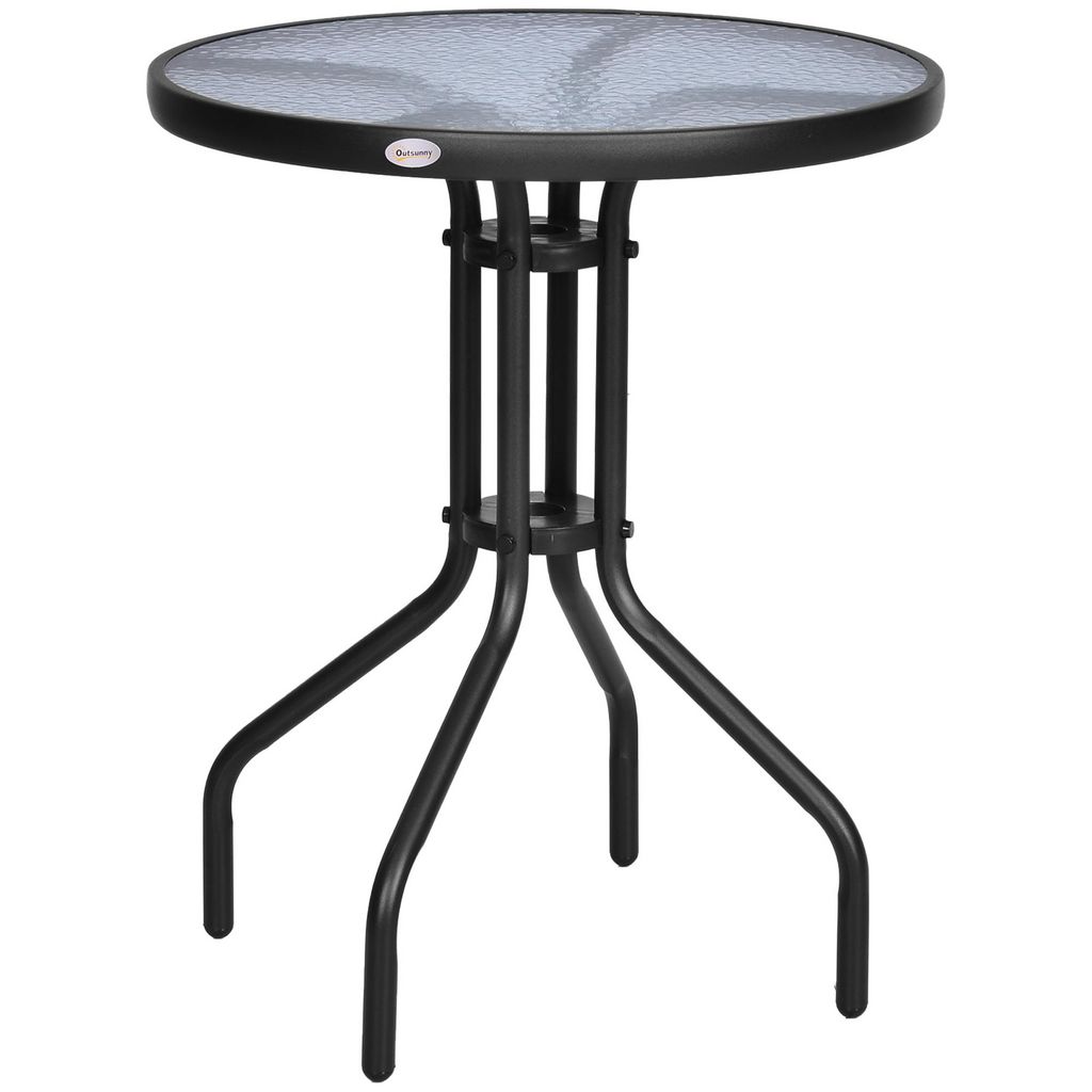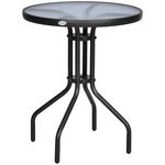 Table ronde bistro de jardin dim. Ø 60 x 70H cm métal époxy anticorrosion noir plateau verre trempé
