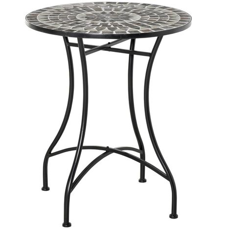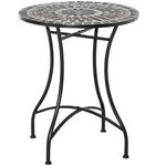 Table ronde style fer forgé bistro plateau mosaïque motif rose des vents métal époxy anticorrosion noir céramique