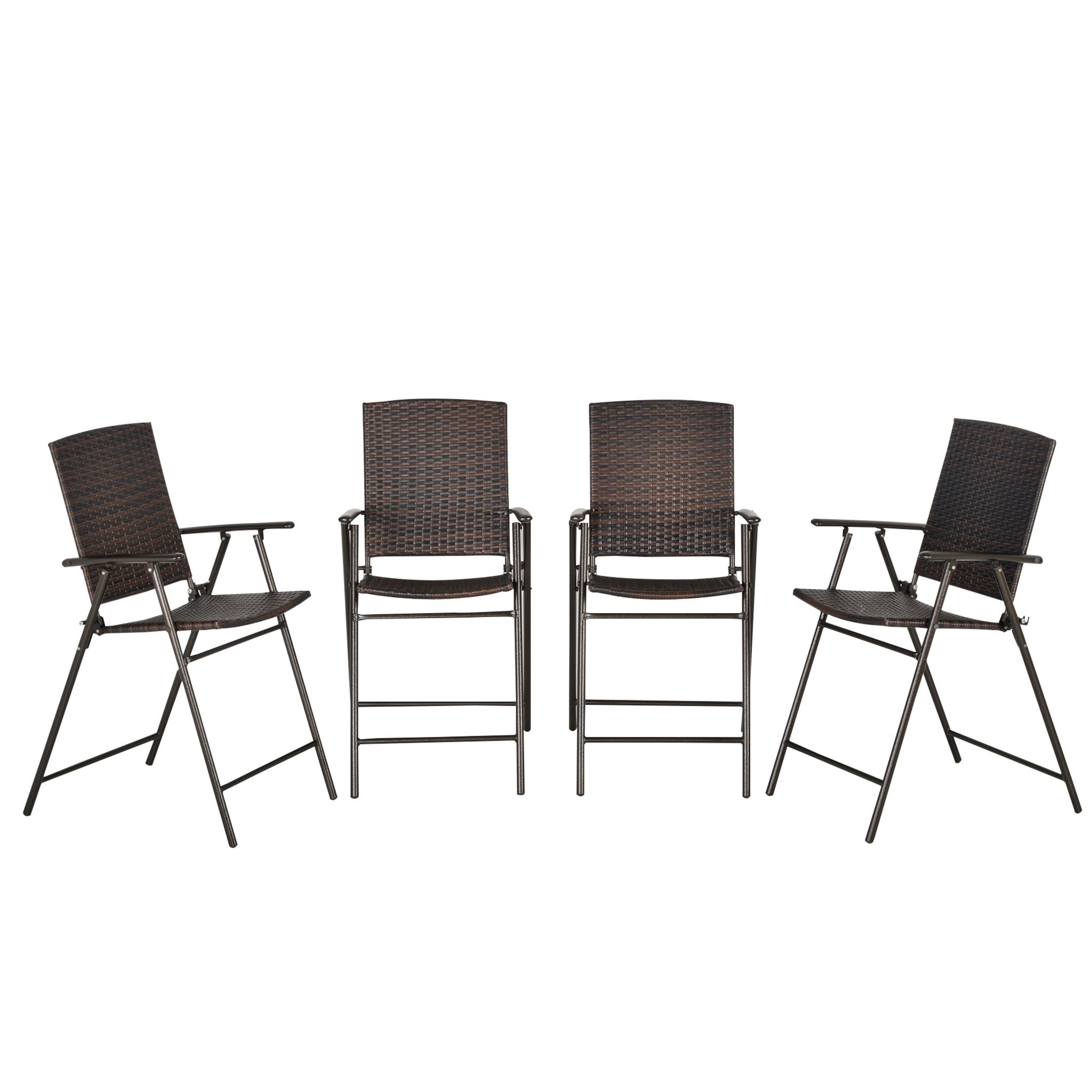 Tabourets de bar pliable style colonial - lot de 4 tabourets de bar - repose-pied + accoudoirs - métal époxy résine tressée chocolat