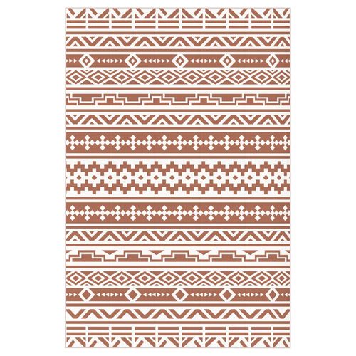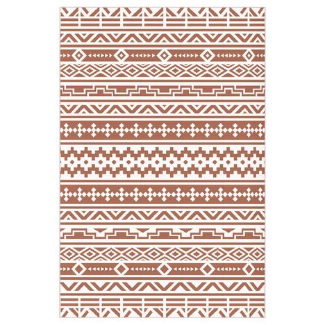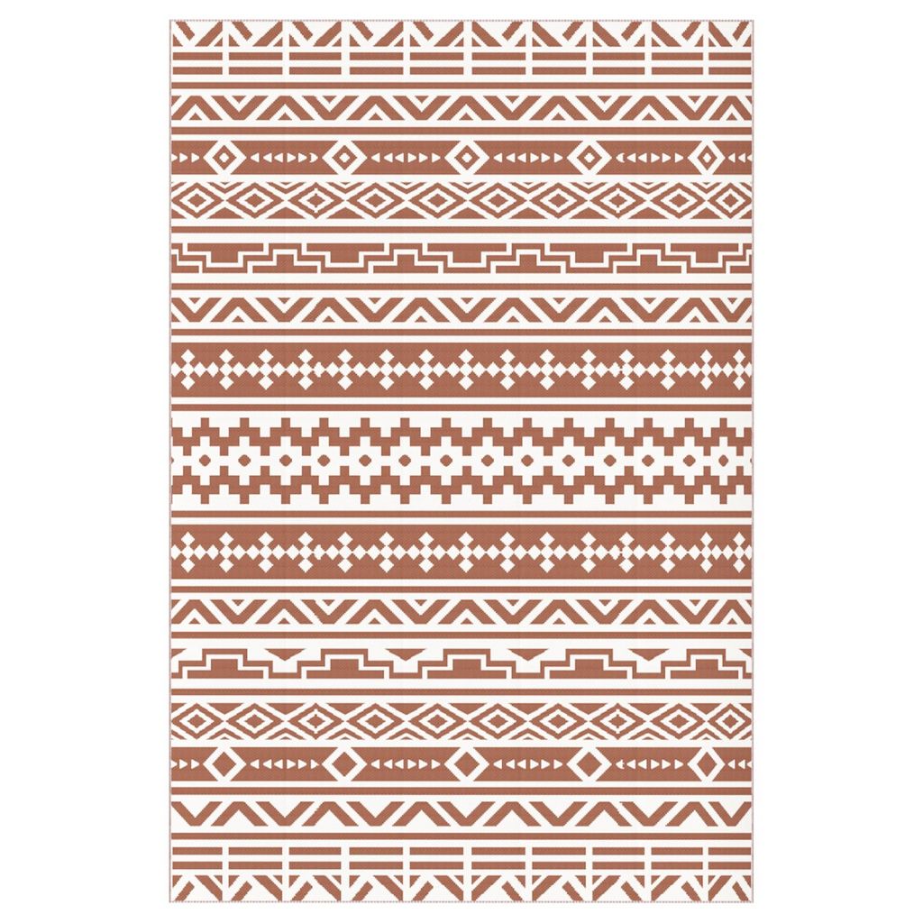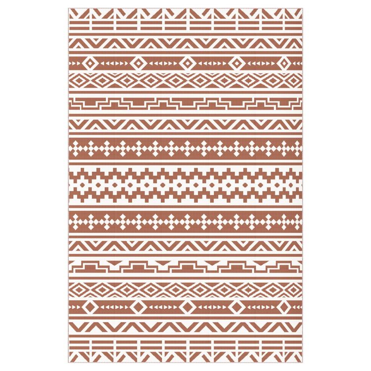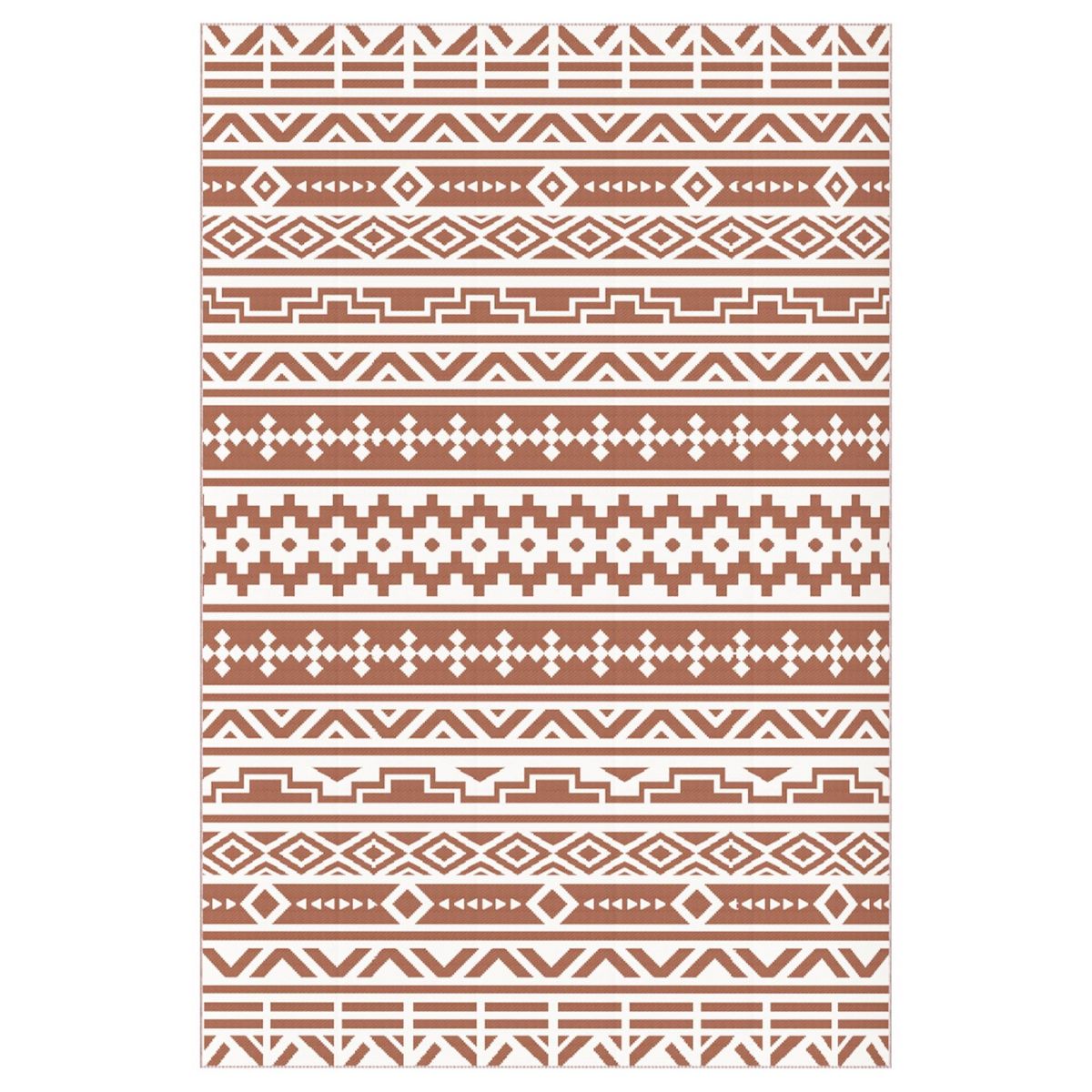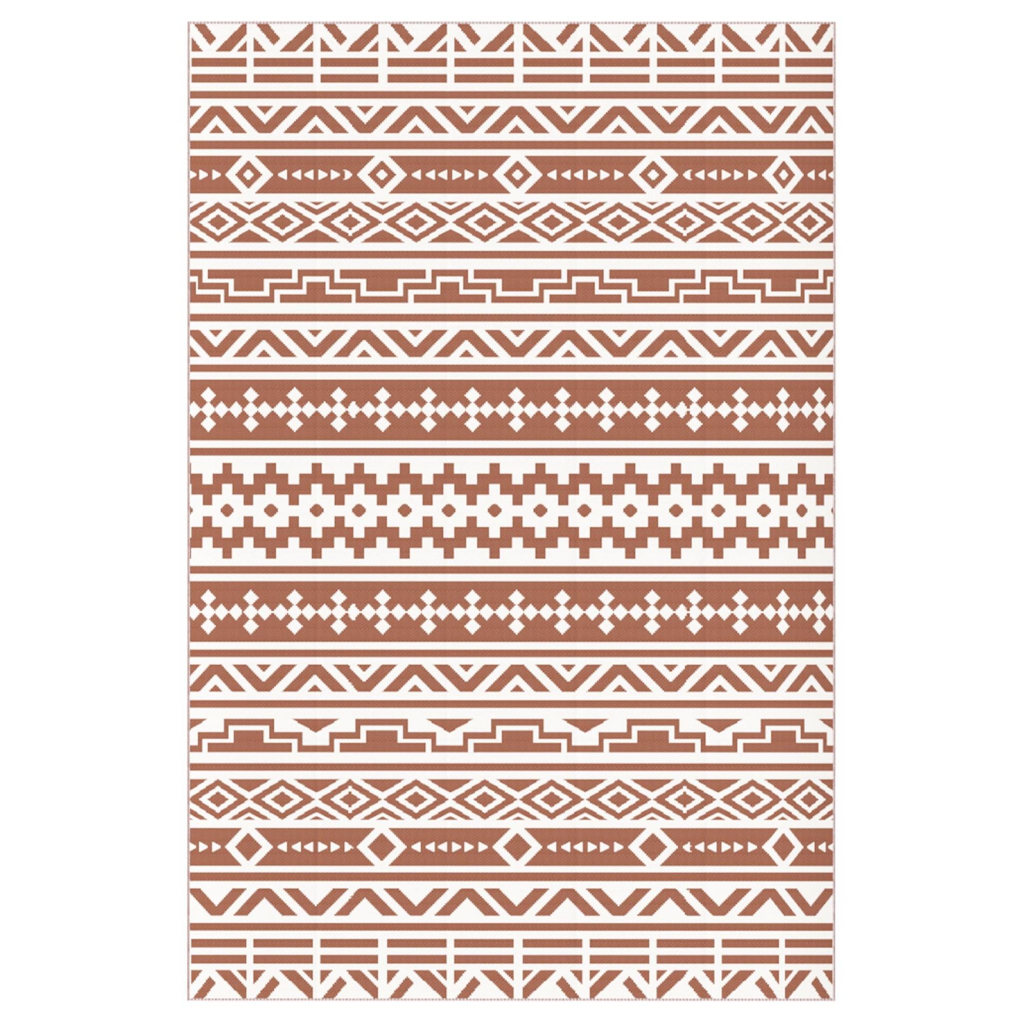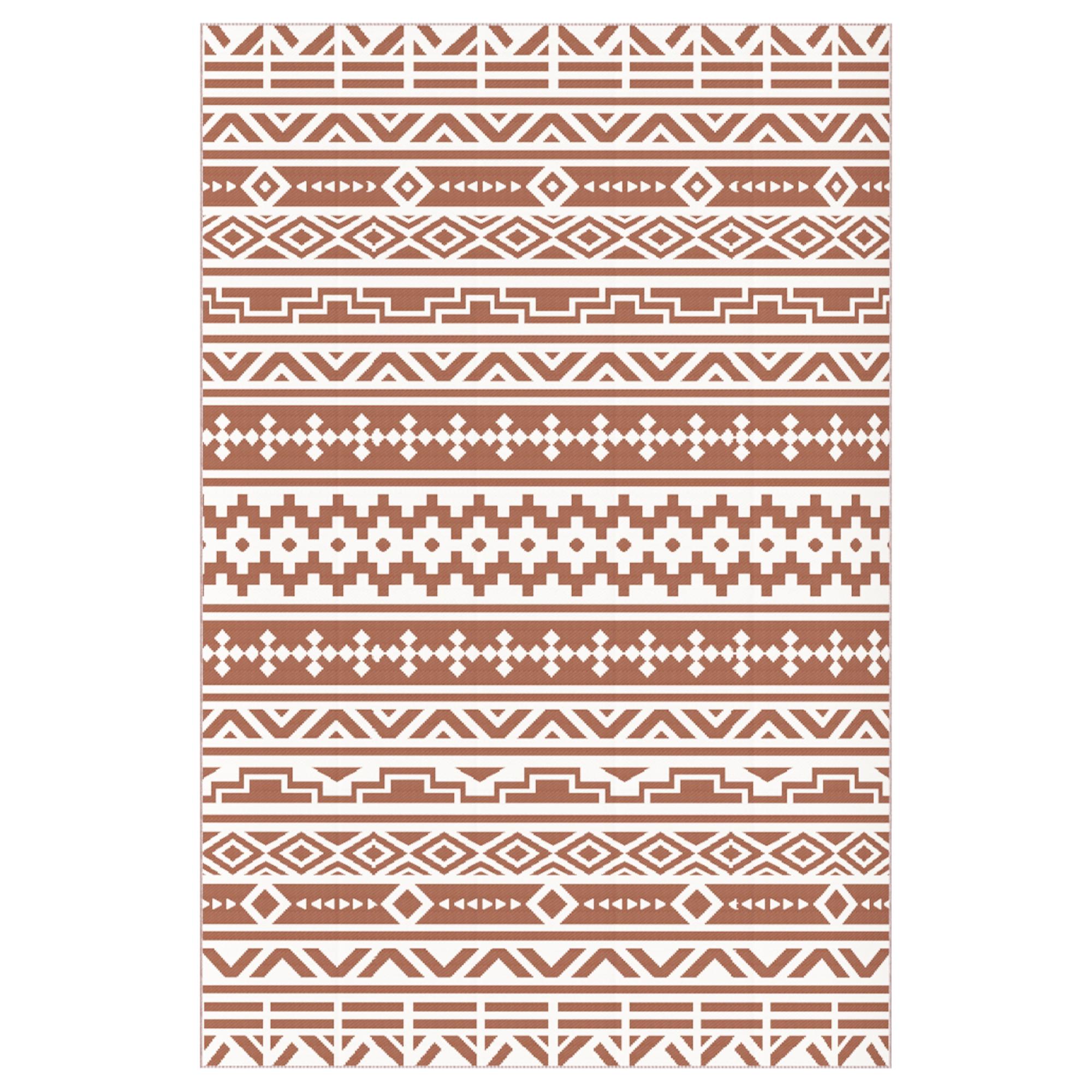 Tapis d'extérieur réversible motif graphique dim. 1,8 x 2,7 m sac transport inclus terracotta beige