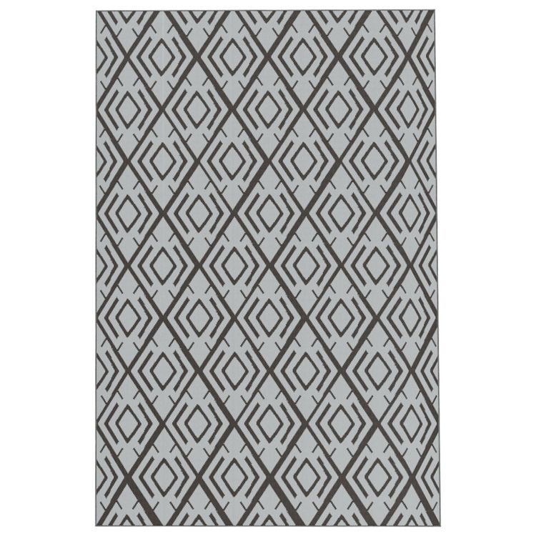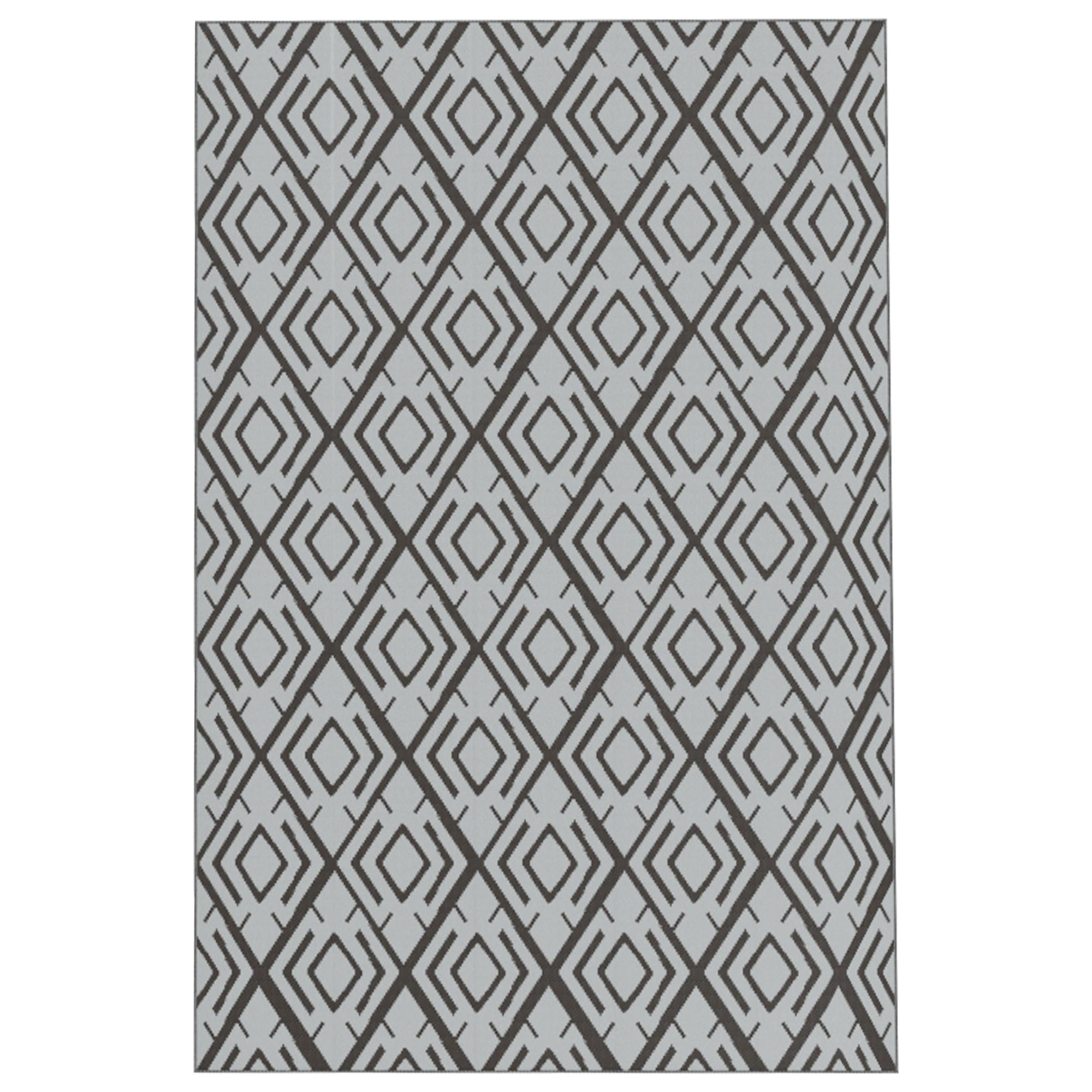 Tapis d'extérieur réversible motif graphique dim. 2,7 x 1,8 m polypropylène gris noir