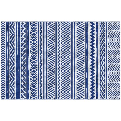Tapis extérieur style graphique - tapis réversible - dim. 2,74L x 1,82l m, ép. 3 mm - PP haute densité 310 g/m² bleu blanc