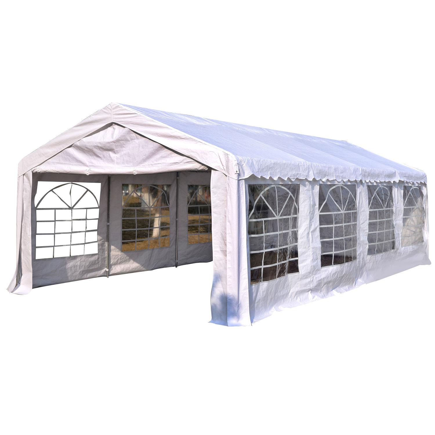 Tente barnum tonnelle de réception 798L x 392l x 280H cm polyéthylène imperméable 8 fenêtres et acier galvanisé robuste blanc
