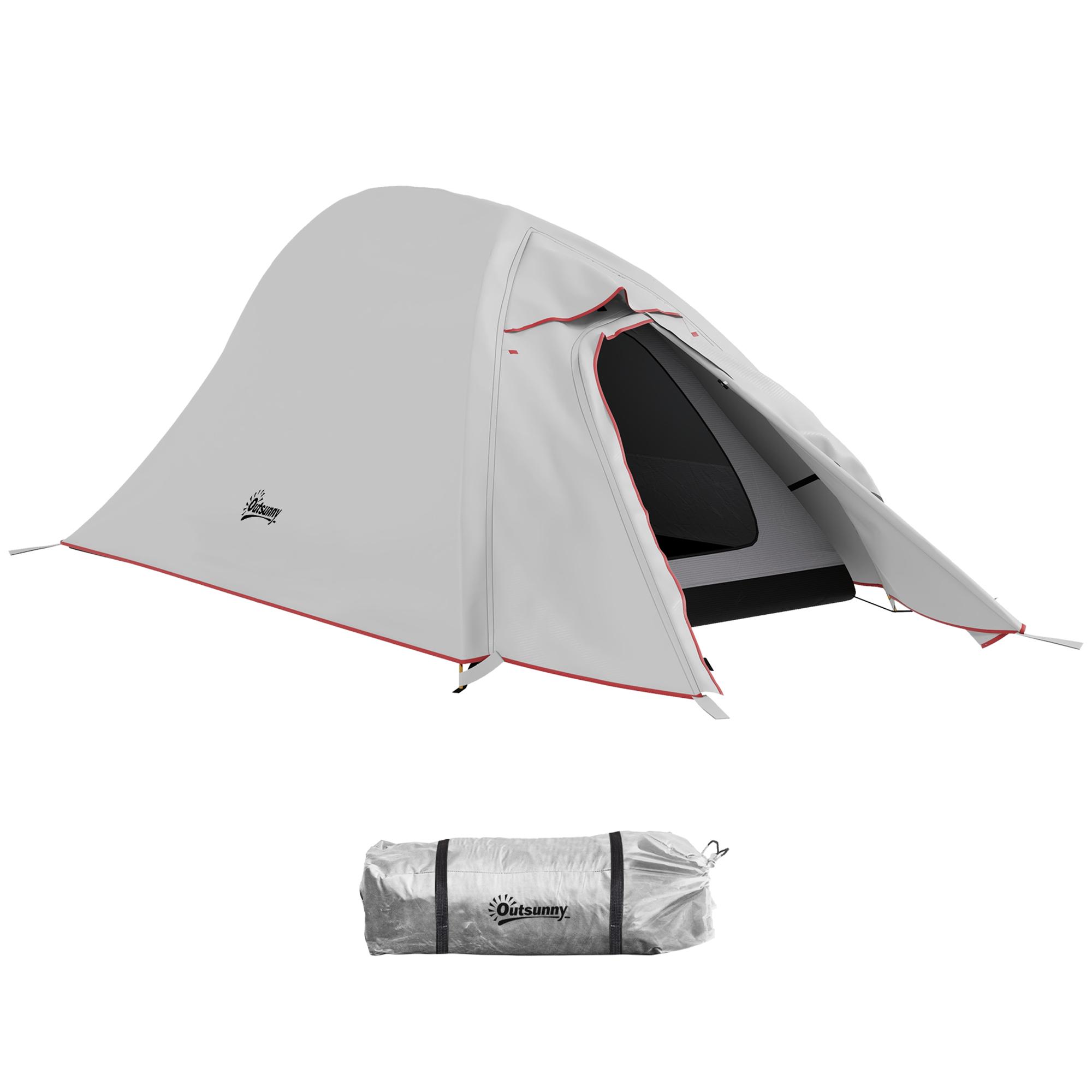 Tente de camping 1-2 pers. double toit étanche 2000 mm sac de transport gris