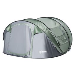 Tente de camping 4-5 personnes montage instantanée pop-up 2 portes enroulables 4 fenêtres dim. 2,63L x 2,2l x 1,23H m fibre verre polyester PE vert gris
