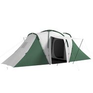 Tente de camping familiale 4-6 pers. - tente tunnel 2 grandes portes sac inclus - fibre verre polyester gris vert