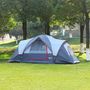 Tente de camping familiale 5-6 pers. - grande porte + 3 fenêtres - dim. 4,55L x 2,3l x 1,8H m fibre verre polyester oxford gris