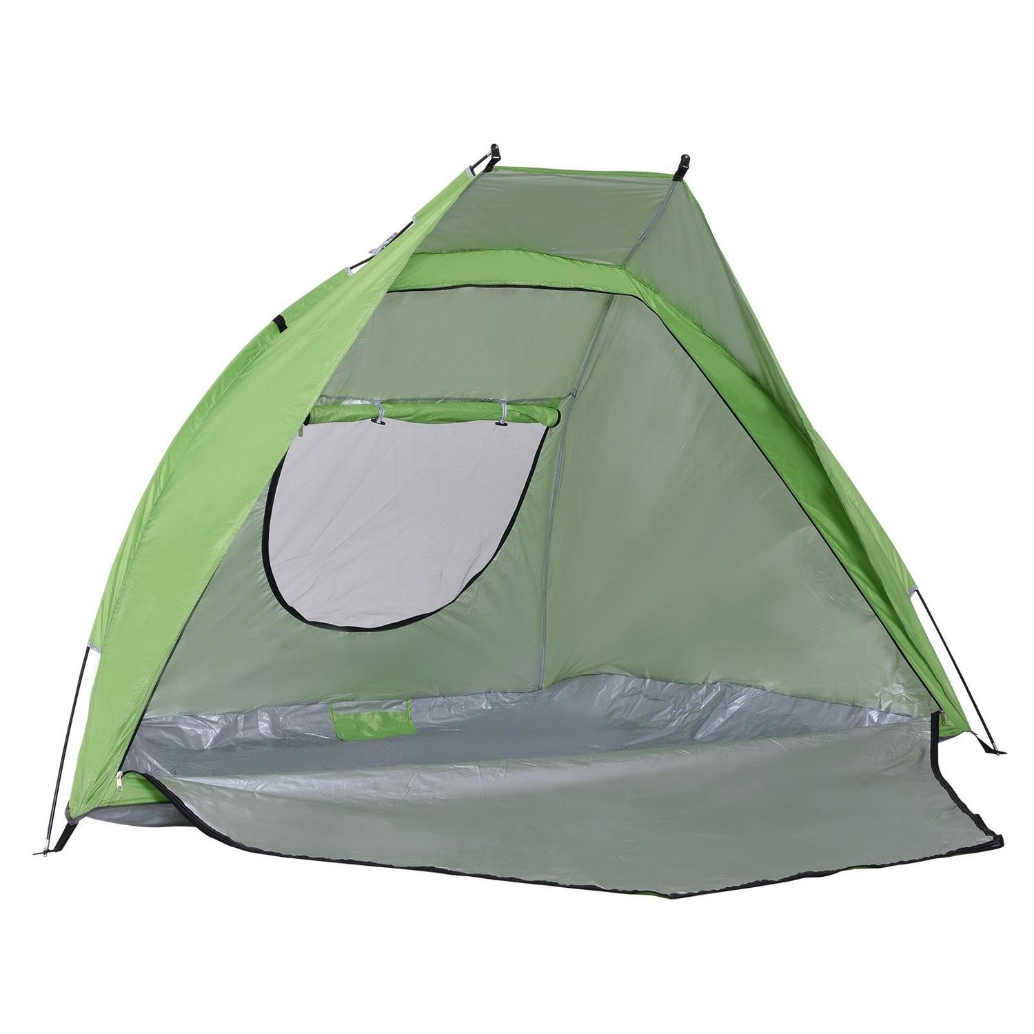 Tente de plage abri de plage pliable dim. 2,30L x 1,40l x 1,27H m fenêtre sac transport inclu polyester vert