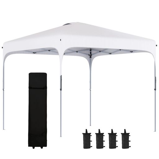 Tonnelle barnum automatique pop-up dim. 2,53L x 2,53l x 2,68H m hauteur réglable nombreux accessoires inclus acier oxford blanc