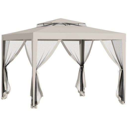 Tonnelle barnum de jardin 3L x 3l m avec 4 moustiquaires amovibles - double toit - métal polyester beige