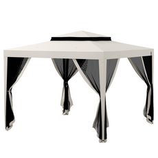 Tonnelle barnum de jardin 3L x 3l m avec 4 moustiquaires amovibles - double toit - métal polyester blanc cassé