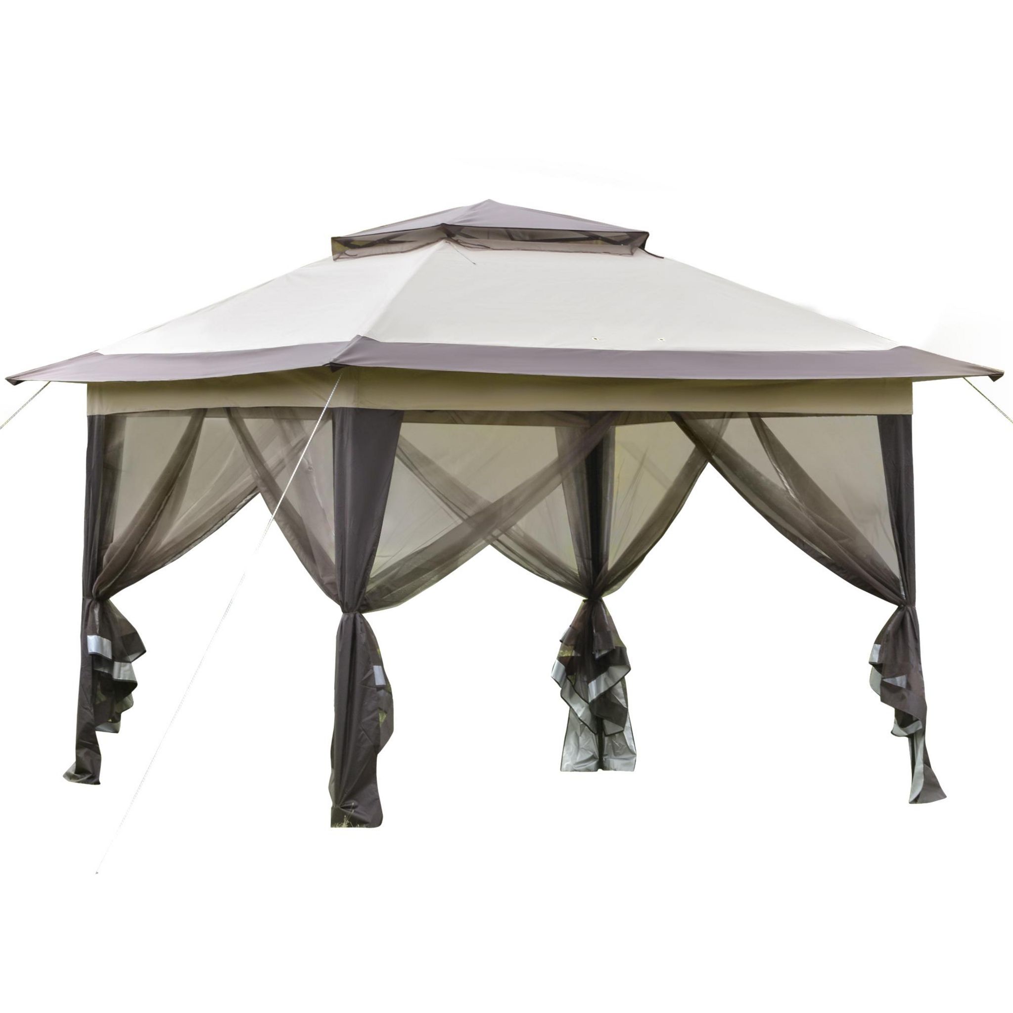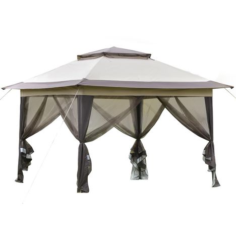 Tonnelle barnum de jardin pop-up pliant 3,64L x 3,64l x 2,94H m acier polyester moustiquaires + sac de transport à roulettes beige marron