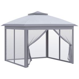 Tonnelle barnum de jardin pop-up pliant - dim. 3,30L x 3,30l x 2,88H m - hauteur réglable, double toit, sac transport - métal époxy, oxford, moustiquaires - gris
