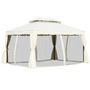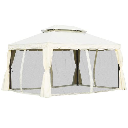 Tonnelle barnum pavillon de jardin style colonial double toit toile moustiquaires et toiles amovibles 3,9L x 2,9l x 2,7H m écru