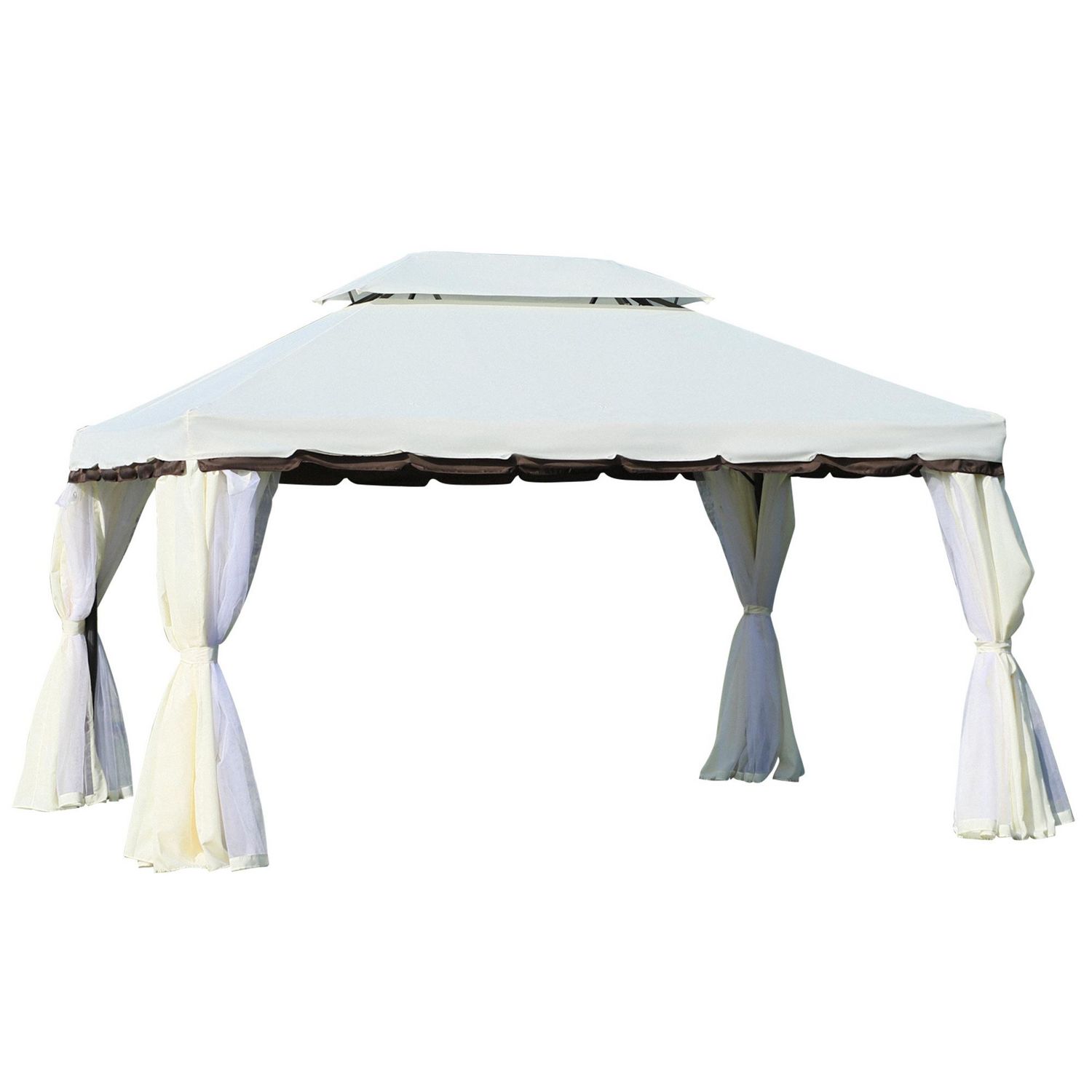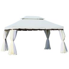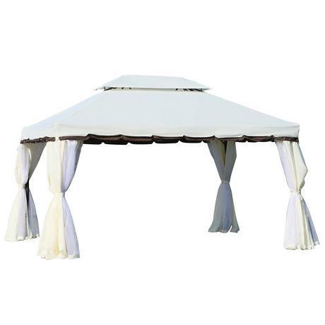 Tonnelle barnum pavillon de jardin style colonial double toit toile moustiquaires et toiles amovibles 3,9L x 2,9l x 2,8H m crème